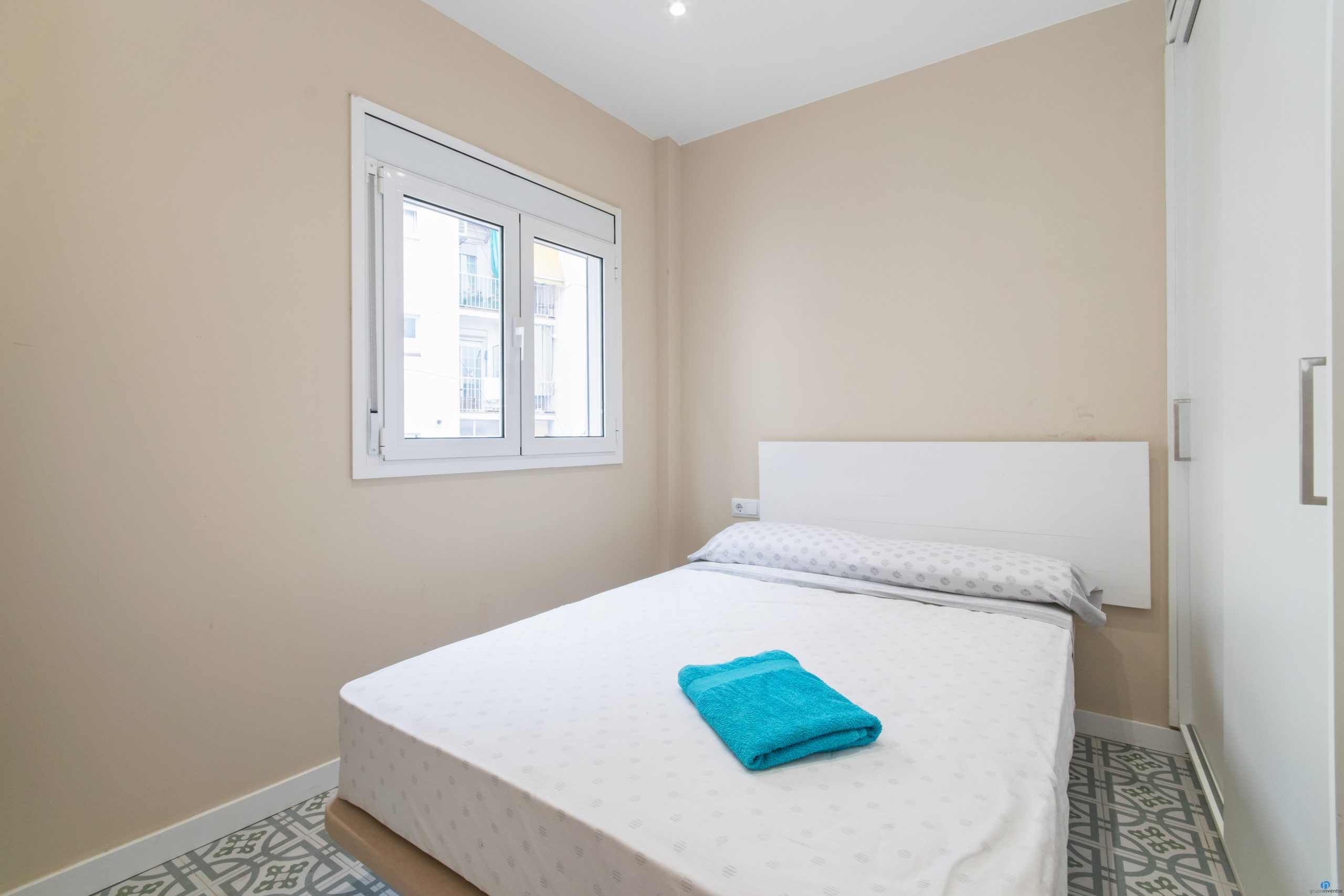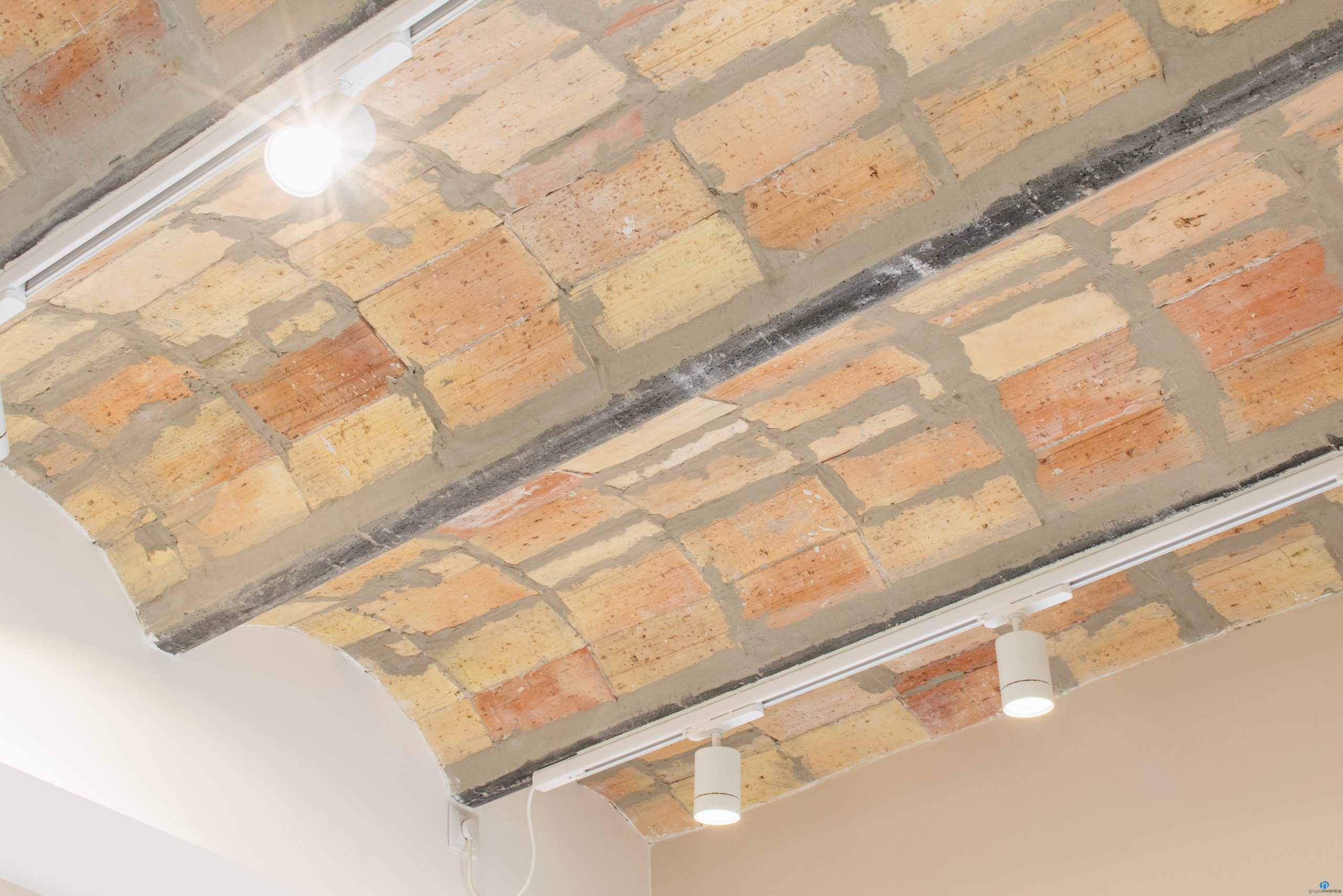 Para el pavimento hemos escogido un suelo de baldosas imitación hidráulico. Combinan muy bien con el techo de volta catalana que hemos restaurado. Pese a tener un aspecto moderno, en esta reforma integral en Sants hemos mantenido la esencia original. También hemos cambiado las ventanas del salón y del dormitorio. Ahora son de carpintería de aluminio y de doble cristal.