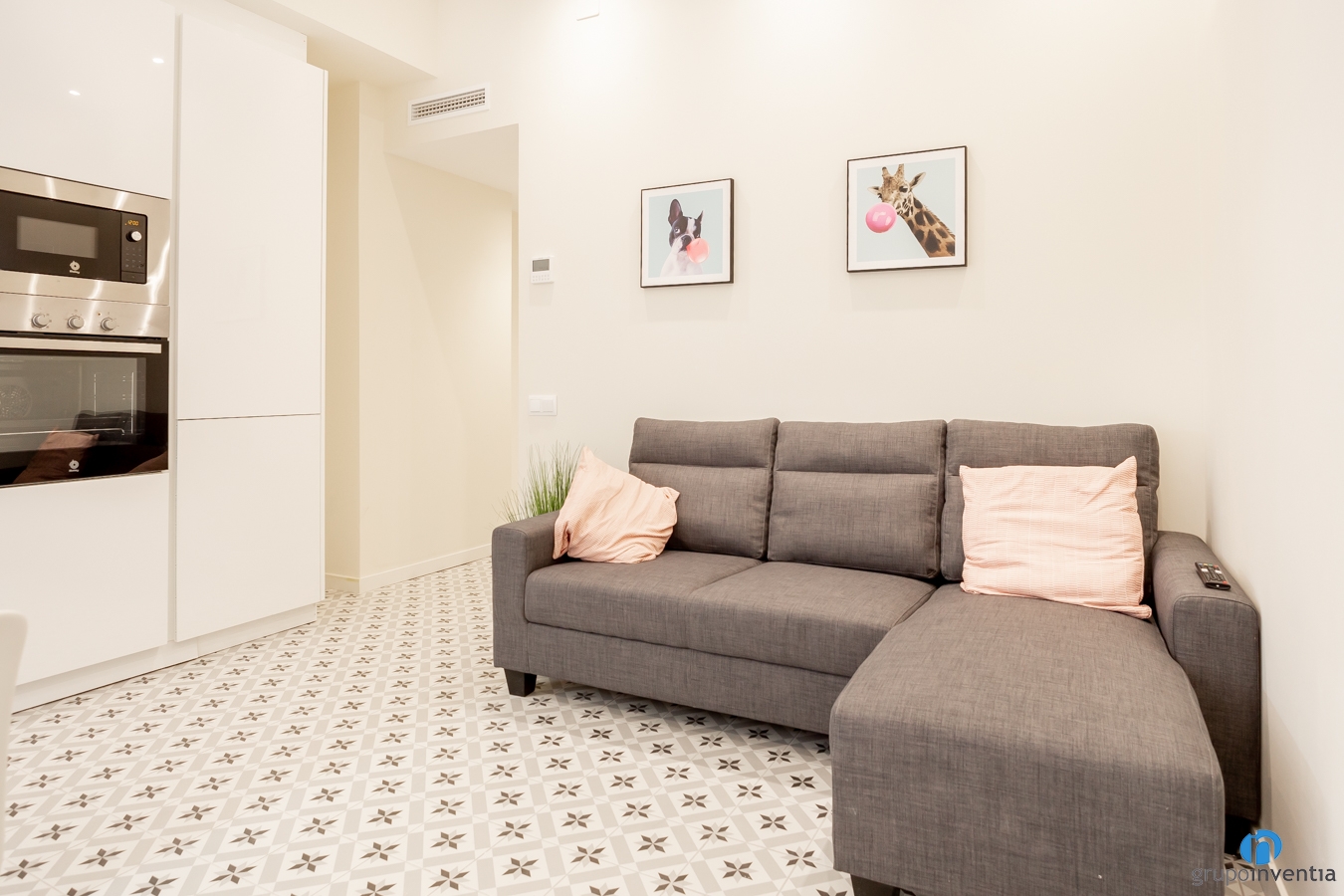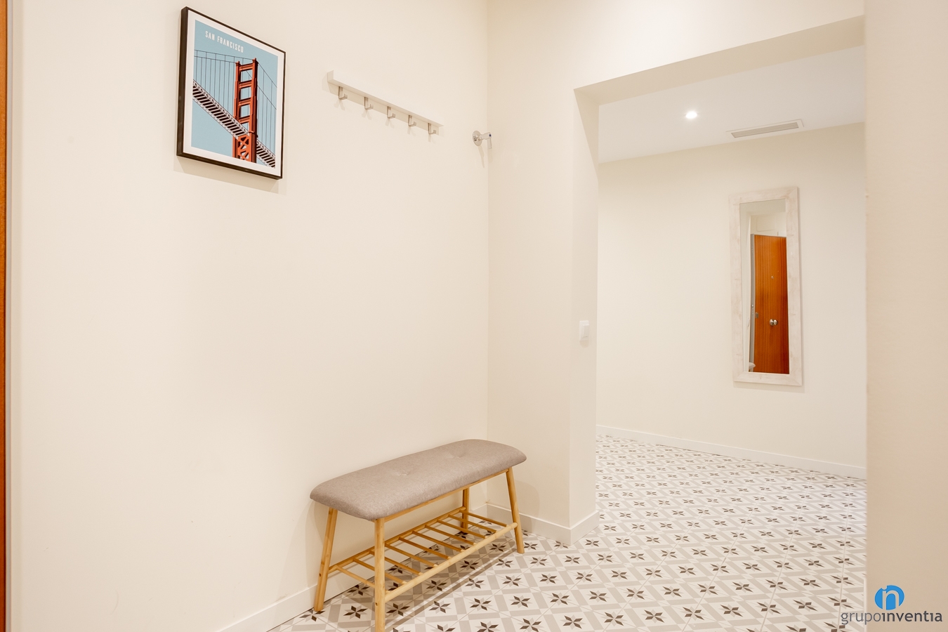 Para conseguirlo hemos pintado las paredes de color beige suave. Además conseguir las características citadas, también hemos creado espacios luminosos y con amplitud visual. Esta nueva imagen la podemos ver tanto en las zonas de comedor y del salón como en los dormitorios. Por su parte, en las zonas comunes hemos colocado un suelo tipo hidráulico, mientras que en las habitaciones ahora hay parquet laminado.