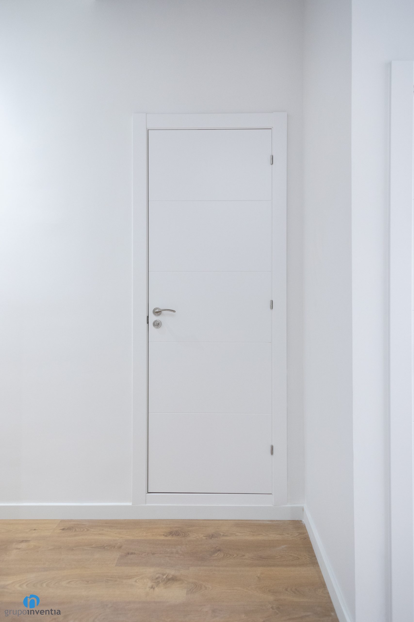 Las nuevas puertas y zócalos también son de color blanco y contribuyen a generar espacios muy luminosos y agradables. El color blanco se combina con un suelo de parquet en tonos medios madera. Tanto los espacios privados como los comunes se presentan en un ambiente idílico para un hogar familiar.