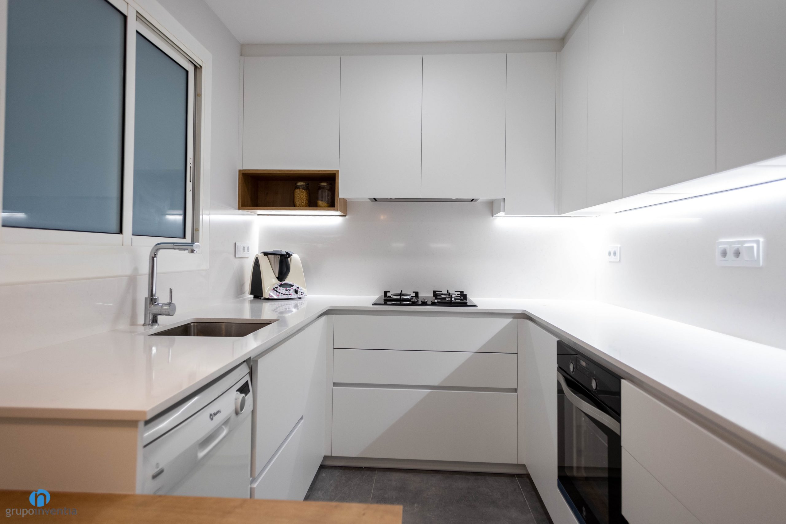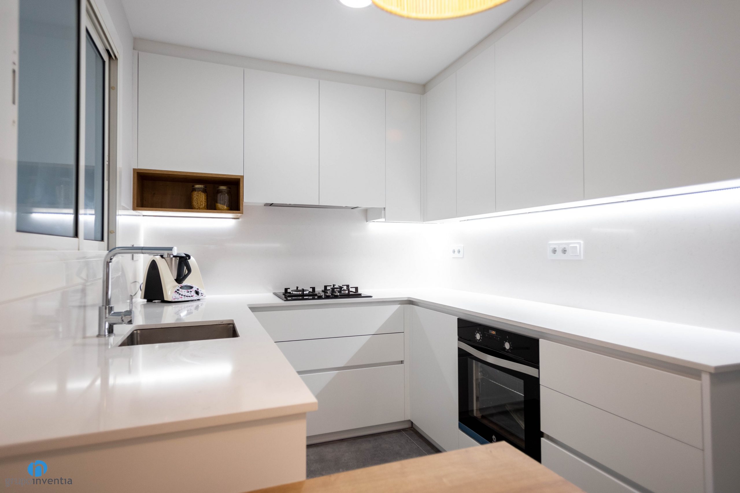 En Grupo Inventia hemos finalizado un nuevo proyecto de reforma integral en Barcelona. Nuestro equipo ha estado trabajando en la mejora de los espacios de esta vivienda situada en calle Espinoi. Se ha conseguido imprimir una imagen moderna y actual además de equipar por completo las estancias clave. En este último punto la cocina y el cuarto de baño están listos para ofrecer las mejores prestaciones.
