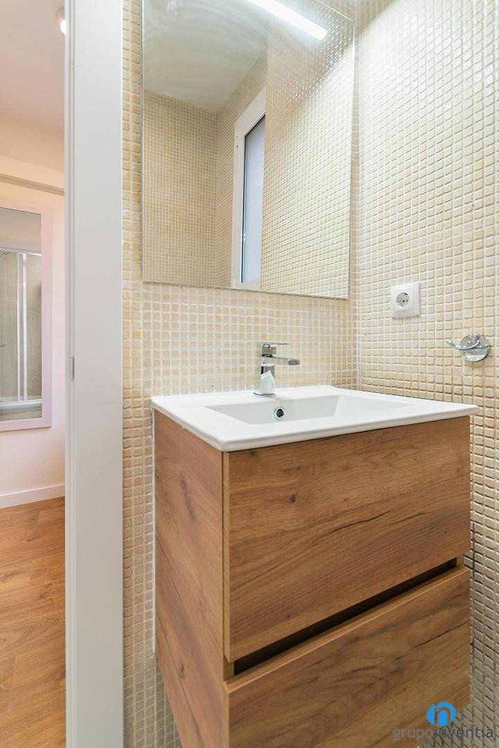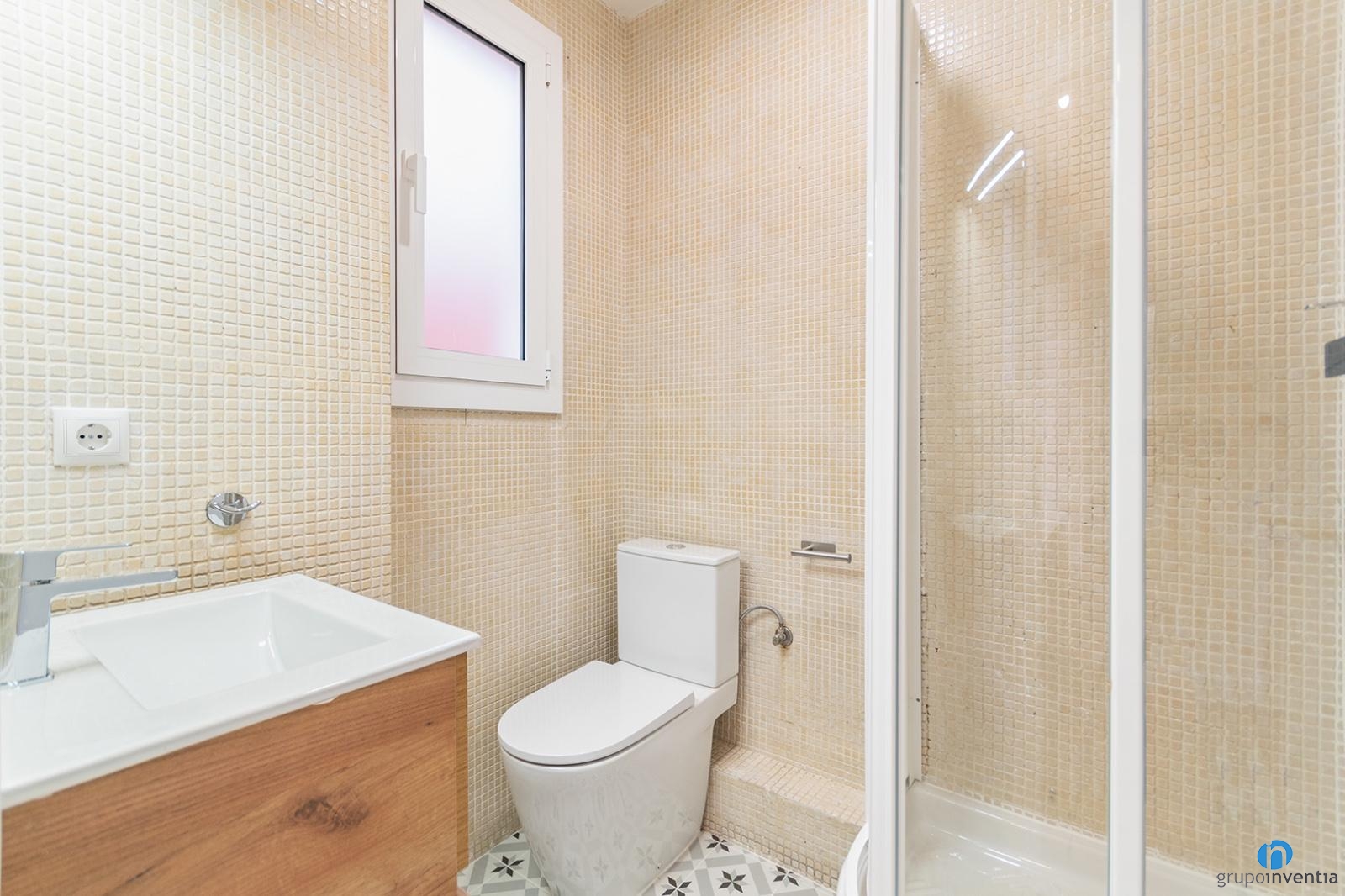 Dentro de esta reforma integral en Barcelona también nos hemos encargado de llevar a cabo la reforma de baño. Un trabajo completo y a medida con el resultado de un espacio de aseo de imagen moderna y de uso funcional. Hemos apostado por un ambiente fresco y las paredes se han alicatado con azulejos tipo mosaico.