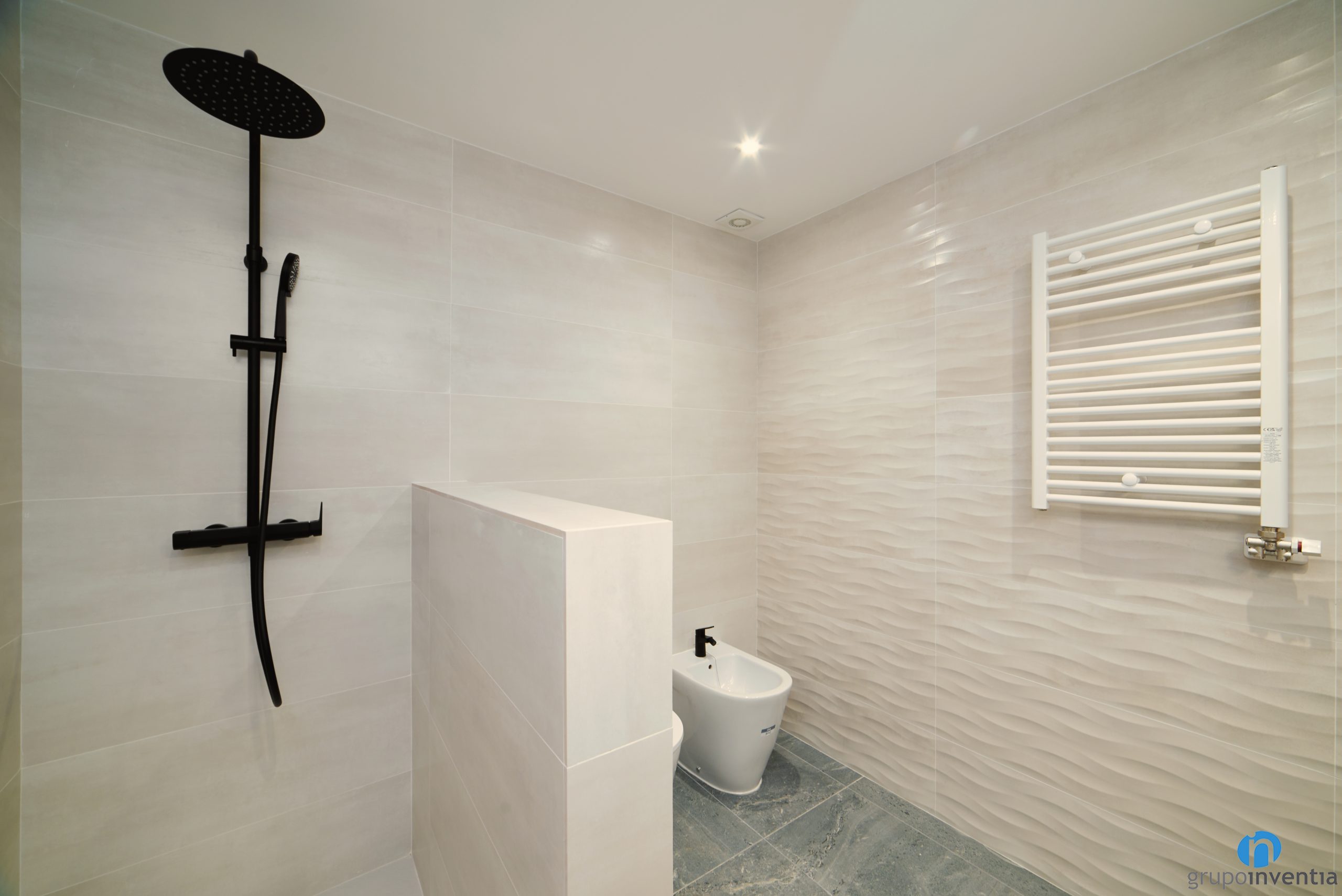 En cuanto al nuevo equipamiento sanitario, cada reforma de baño dispone de un nuevo lavabo, inodoro y zona de aguas. En este último elemento vemos una variación, ya que en uno hemos colocado un plato de ducha y en el otro una bañera. También hemos colocado en cada uno de ellos un armario de baño vertical para ampliar la capacidad de almacenaje.