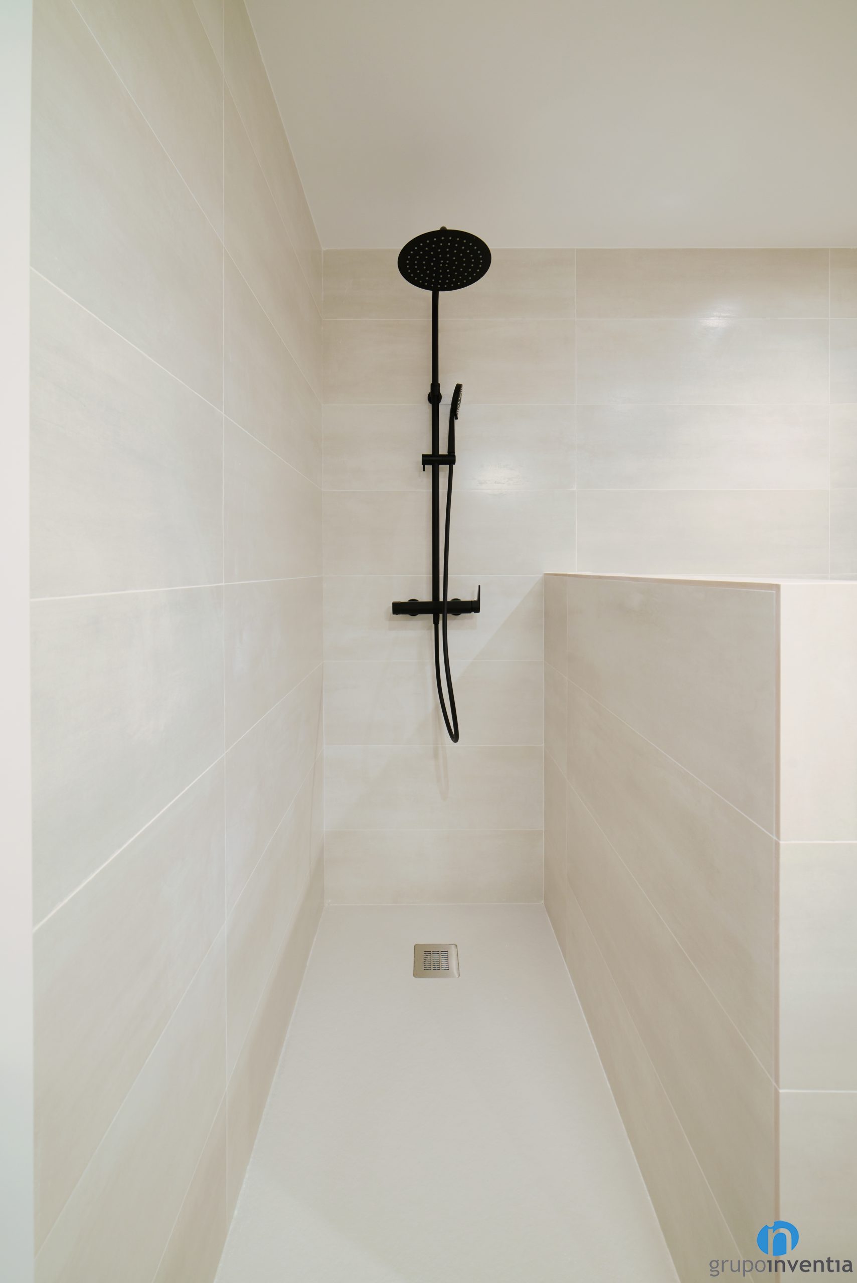 Para la nueva imagen de esta reforma de baños se ha usado una misma línea decorativa. De este modo, los cuartos de baño también quedan conectados a través de su diseño interior. Hemos alicatado las paredes por completo con azulejos de color beige. Ahora los cuartos de baño tienen una imagen luminosa y visualmente amplia.