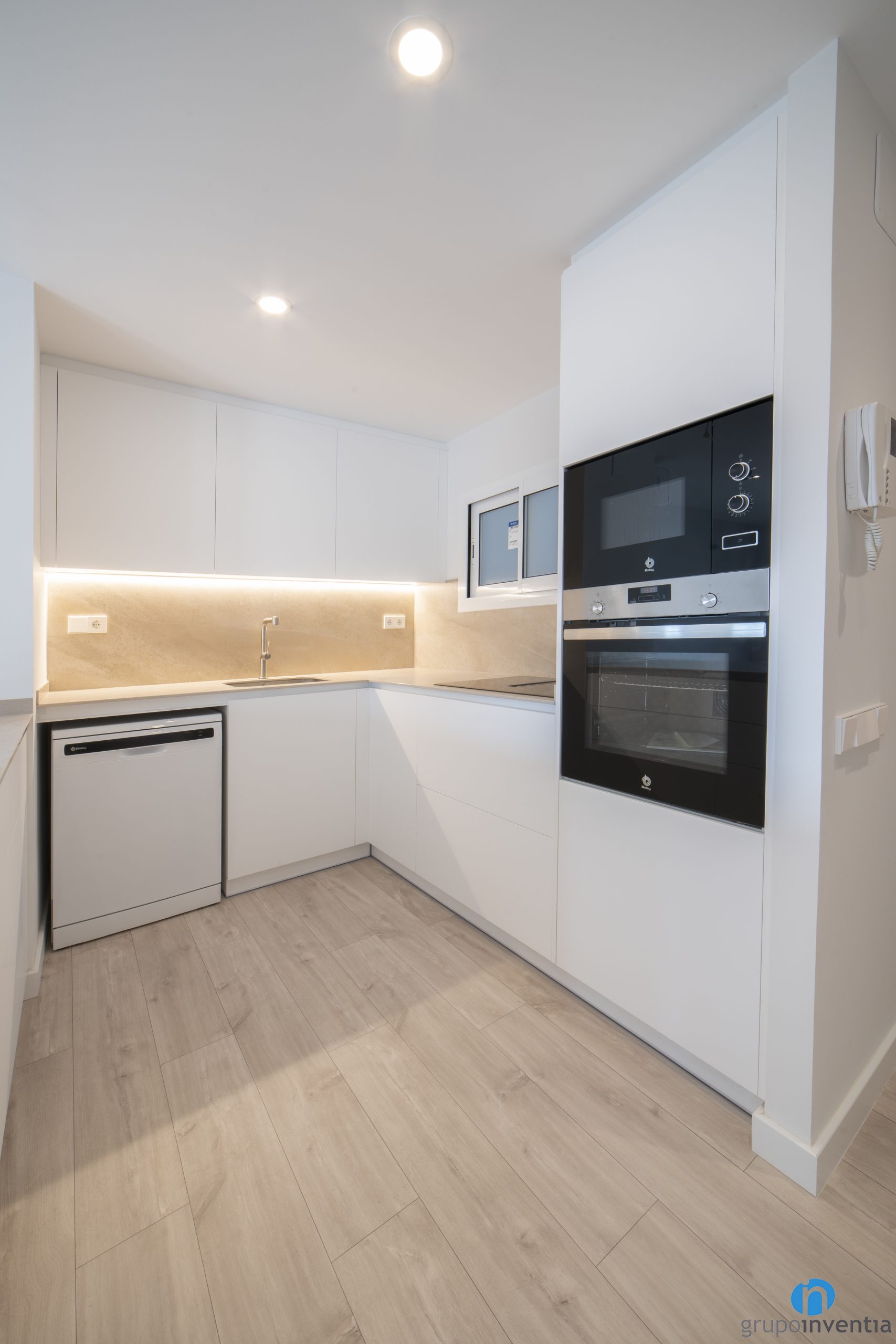El primer tramo de encimera lo hemos equipado con la placa vitrocerámica y en el segundo hemos integrado el fregadero. La reforma de cocina cuenta con una amplia capacidad de almacenaje. Tiene cajones y armarios en la zona superior e inferior de las encimeras. En esta última se ha integrado otro electrodoméstico, el lavavajillas.