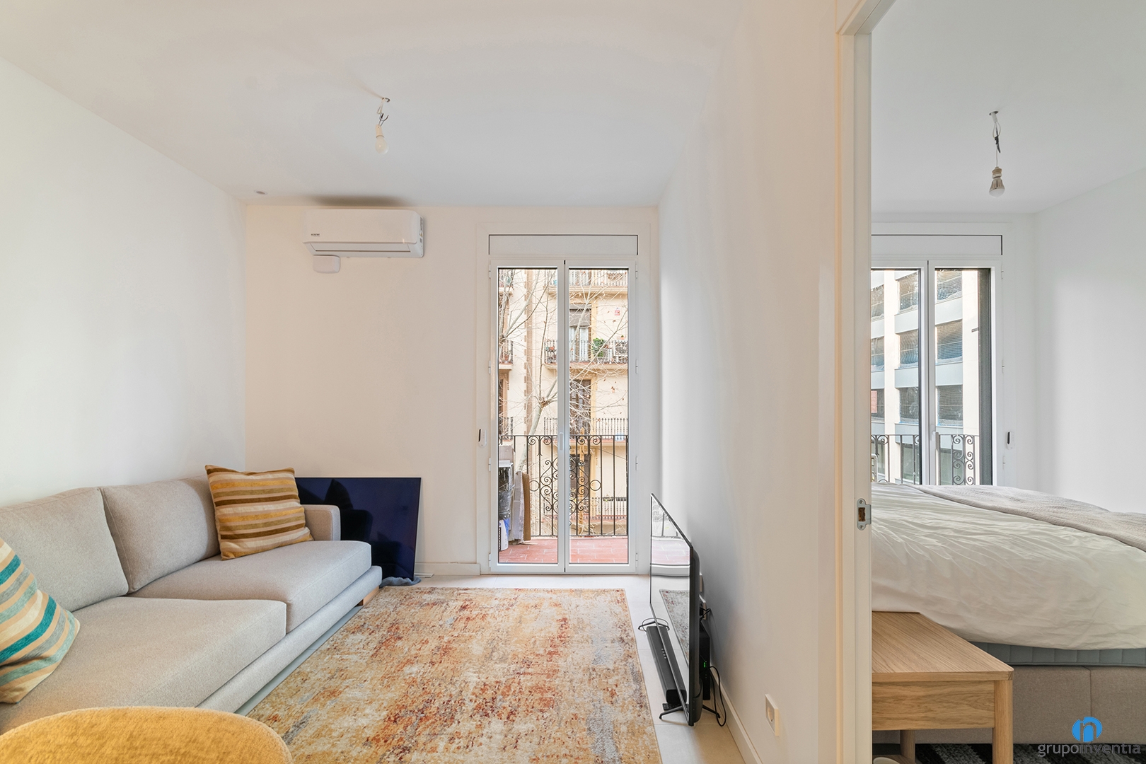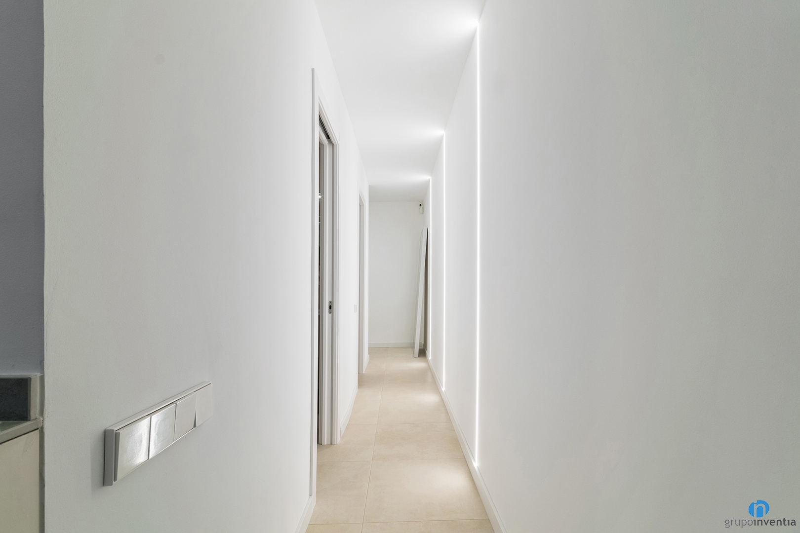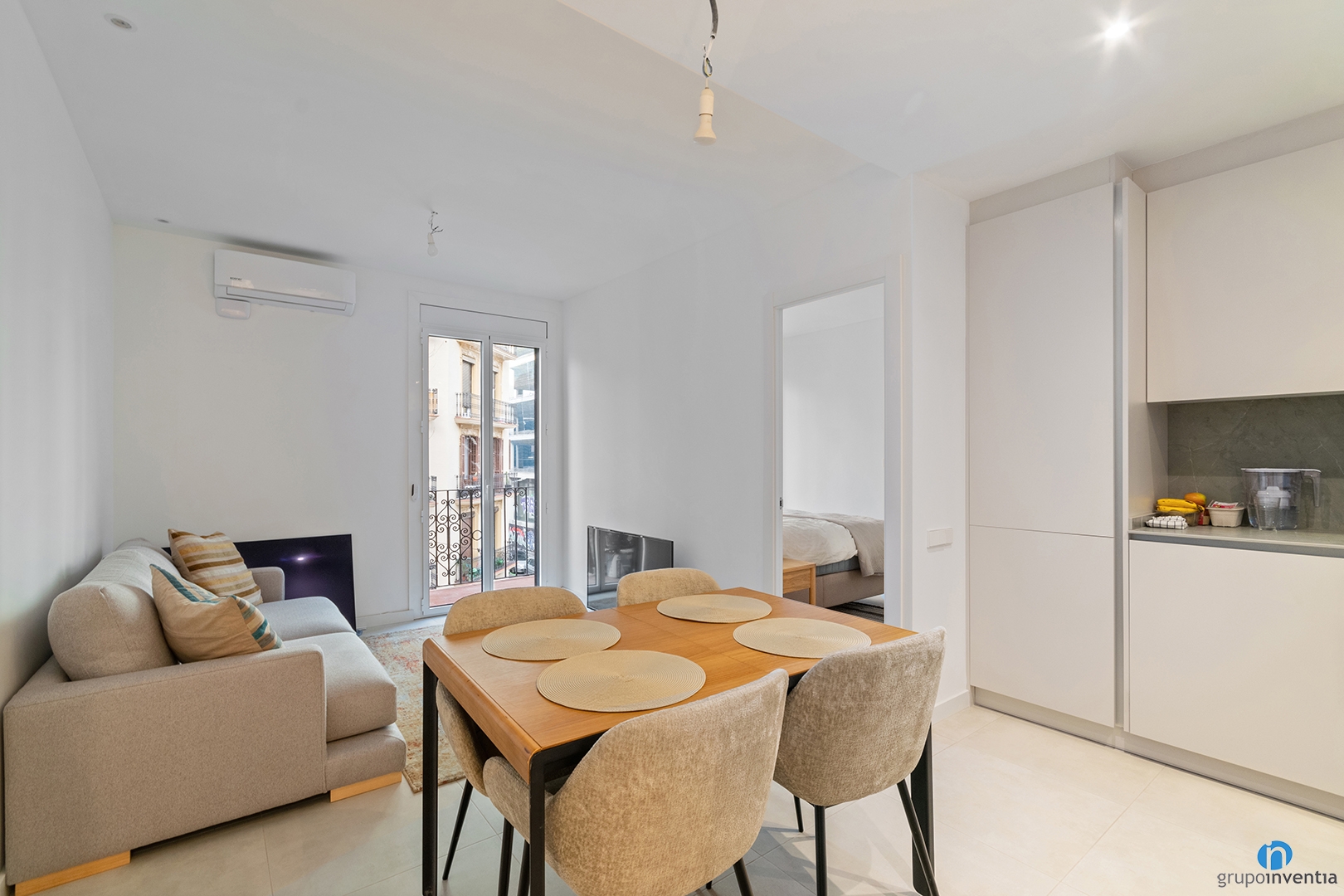 Se combina con un suelo de baldosas en tono beige que aporta un toque cálido al nuevo interiorismo. En la distribución interior también quedan bien definidos los espacios con un mobiliario funcional. Los dormitorios siguen la estética general y se presentan como un espacio ideal para el descanso.