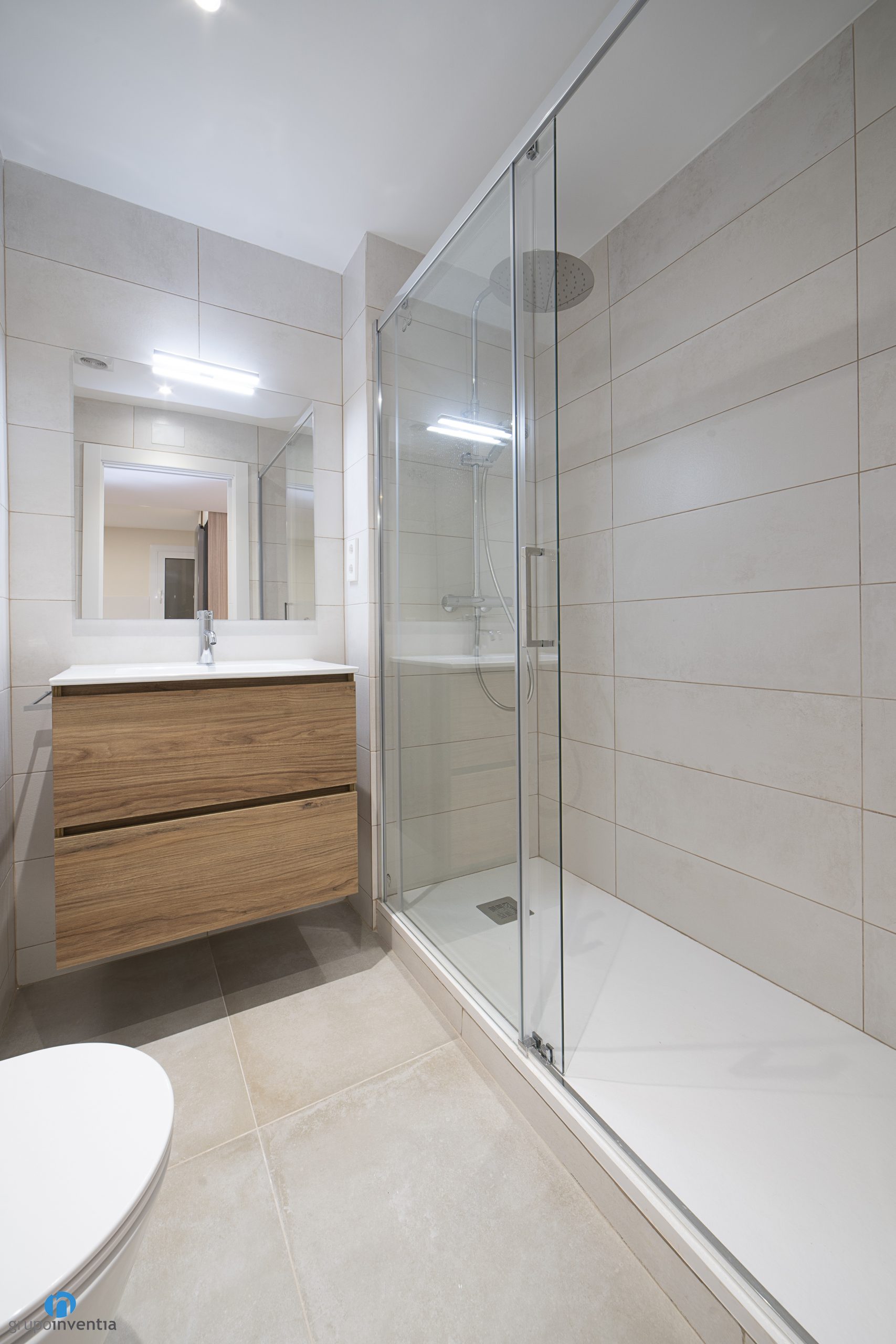 Para la nueva imagen de estas reformas de baño se han utilizado los mismos elementos decorativos. Las paredes se han alicatado con azulejos de forma rectangular y de color beige. Del mismo modo que en otros espacios de la casa en el baño se ha creado un ambiente fresco y agradable. El nuevo pavimento es de gres y también en tonos neutros. En líneas generales los cuartos de baño se adaptan a las necesidades diarias y ofrecen el mejor ambiente para los momentos más relajados.