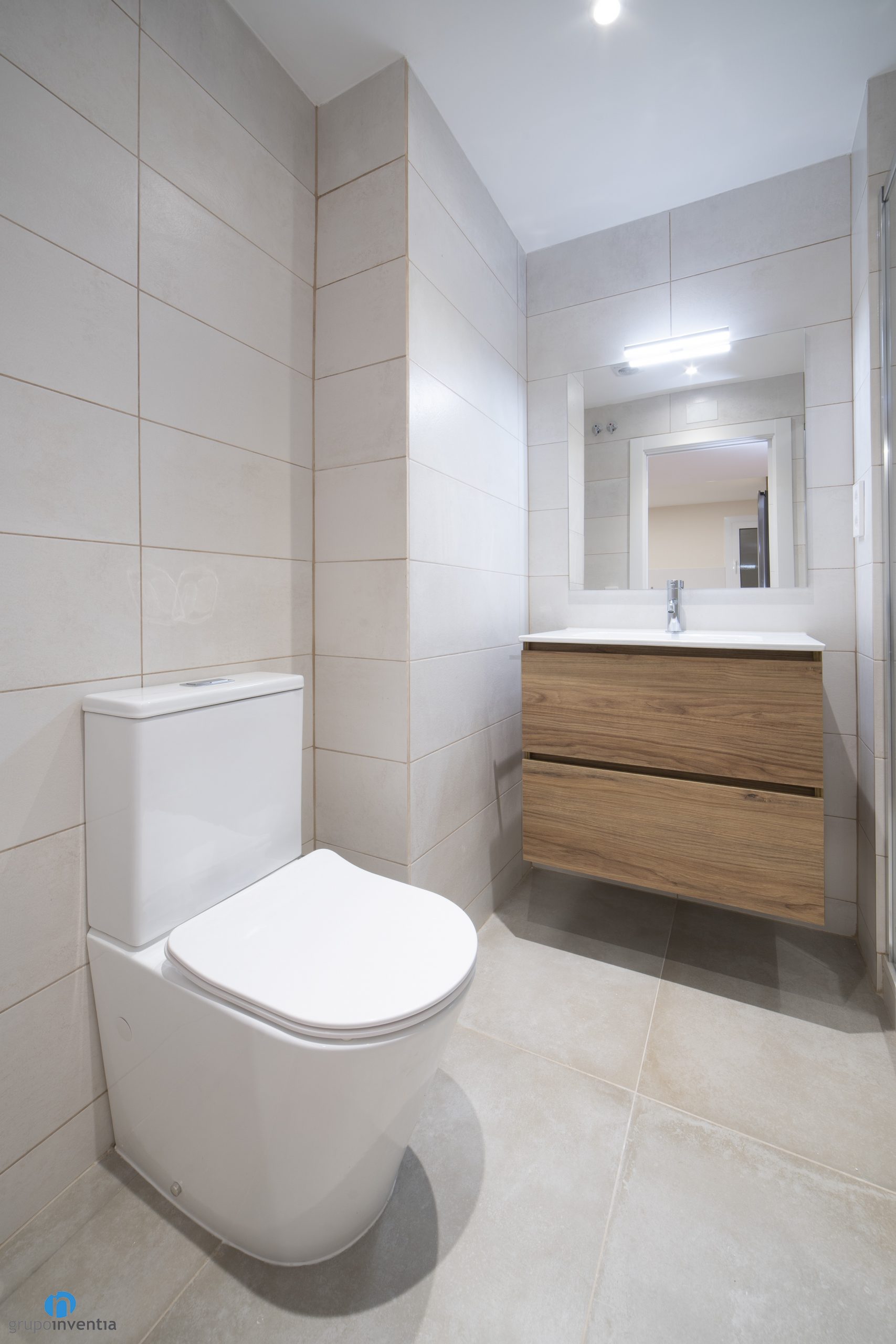 Al tratarse de un proyecto de reforma integral también nos hemos encargado de mejorar los dos cuartos de baño de la vivienda. El objetivo ha sido claro: modernizar y dotar de funcionalidad máxima a los dos espacios de aseo. Para conseguirlo disponemos de un catálogo amplio en el que puedes escoger tanto la nueva imagen como el nuevo equipamiento.