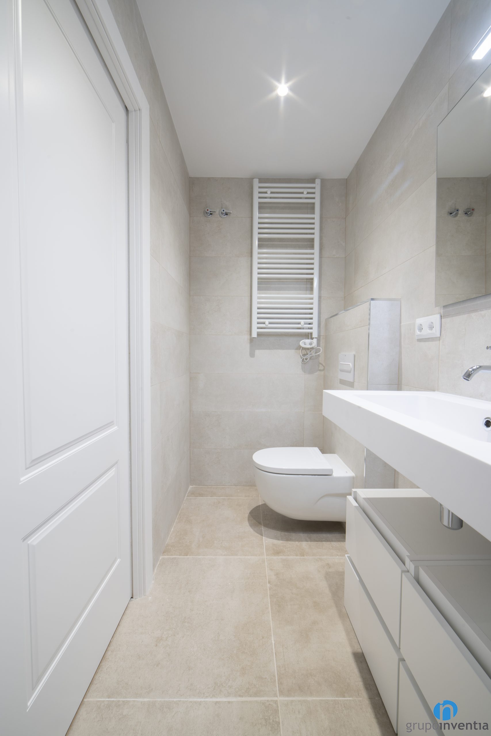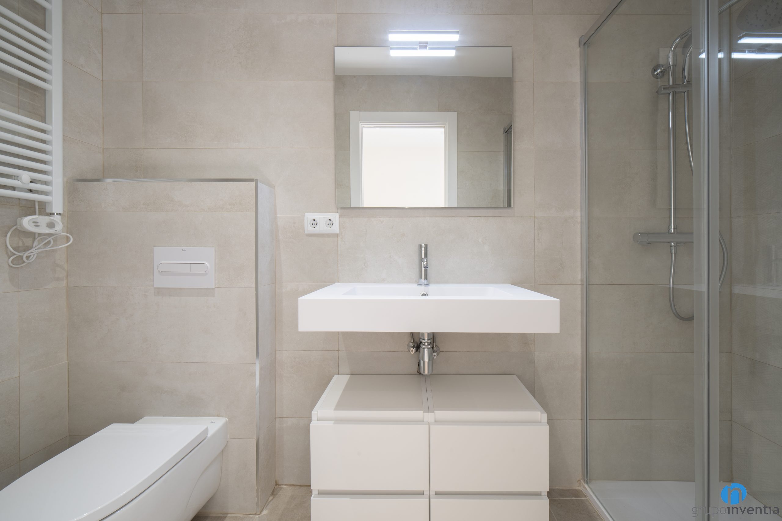 Para la nueva imagen de esta reforma de baños hemos optado por un estilo neutro y atemporal. Los tonos neutros son protagonistas y hemos conseguido dos espacios muy luminosos y acogedores. Hemos alicatado las paredes por completo con azulejos de tonos suaves de gris y beige.