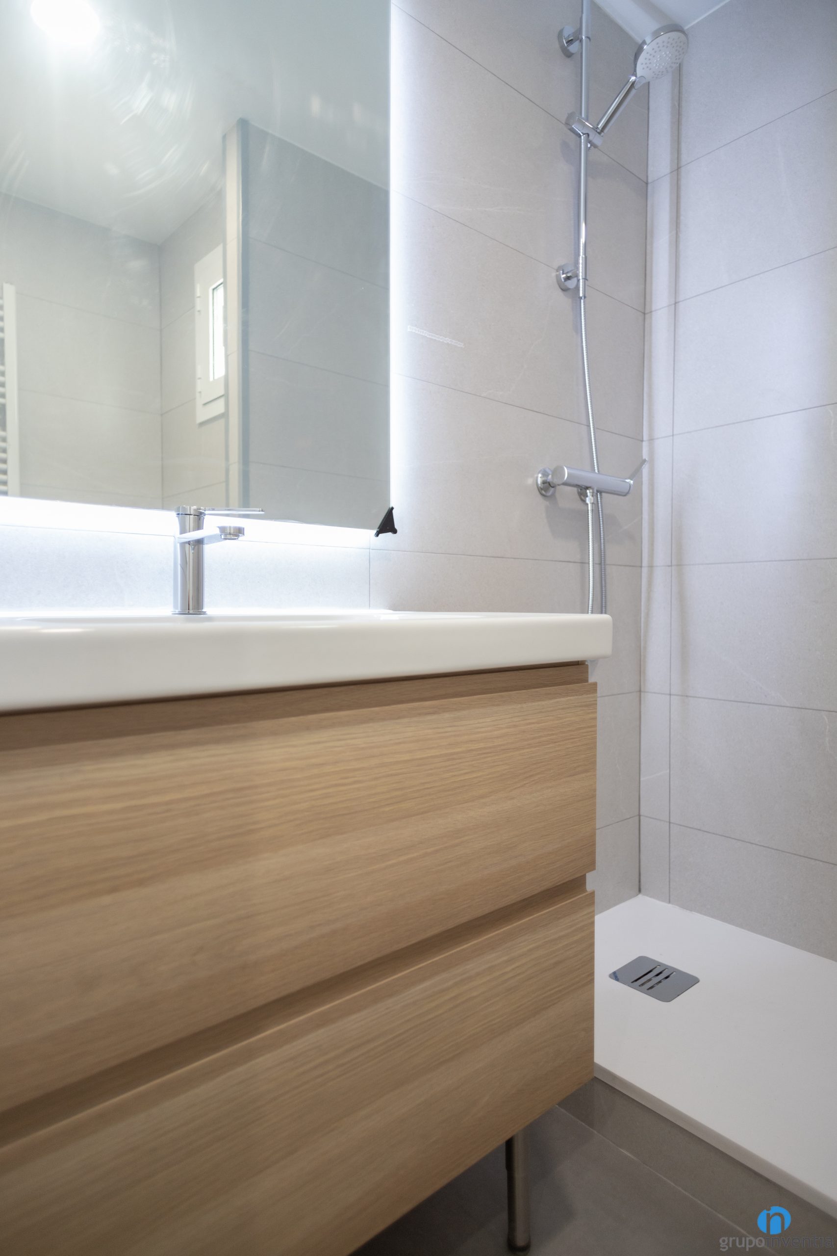 También cuentan con el mismo equipamiento sanitario que se compone por tres nuevas piezas. Concretamente un lavabo con mueble de almacenaje incorporado, un inodoro y un plato de ducha. Una vez terminada la reforma de baños podemos apreciar dos espacios funcionales y listos para ofrecer las mejores prestaciones.