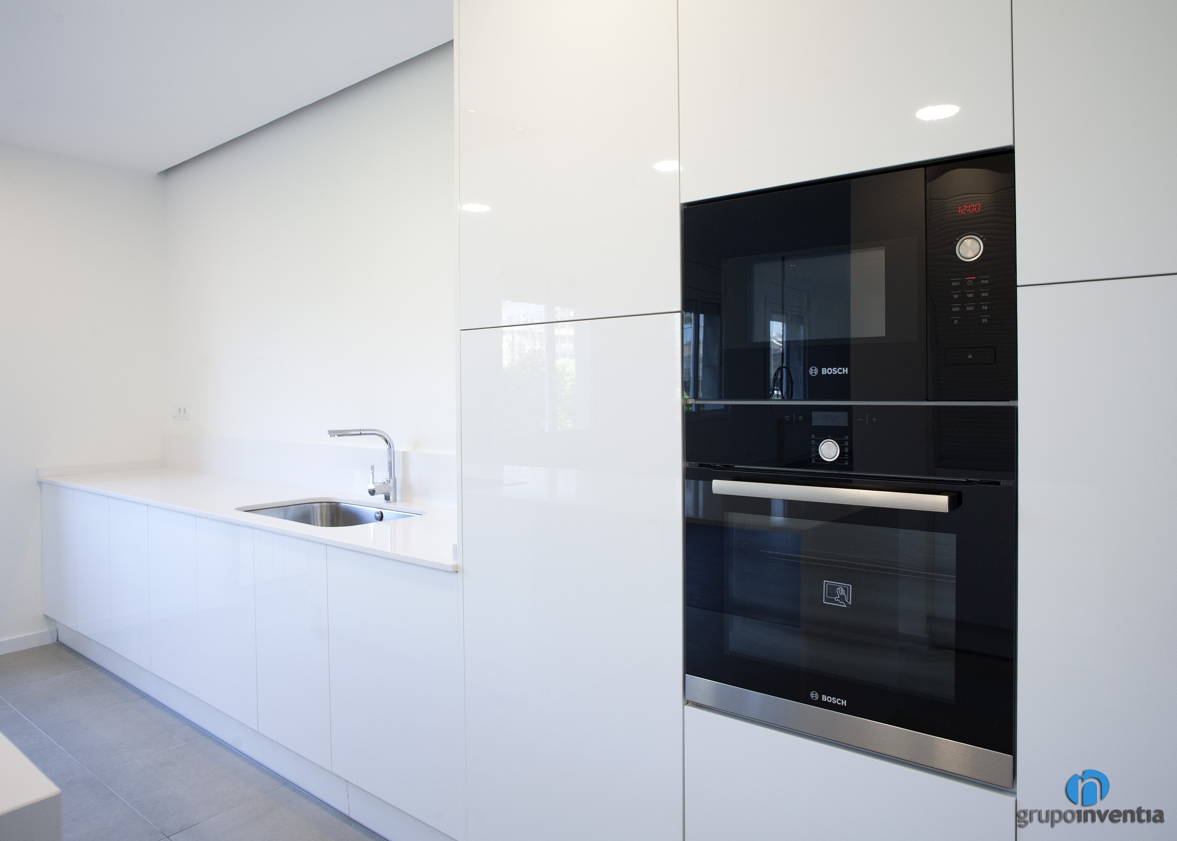 La cocina es abierta y está distribuida a dos frentes, siendo uno de estos una isla de cocina. Ésta, además de ofrecer una amplia superficie de apoyo, está equipada con una placa vitrocerámica y puede utilizarse como barra de cocina. Así se consigue un espacio perfecto para realizar las ingestas diarias con mucha comodidad.