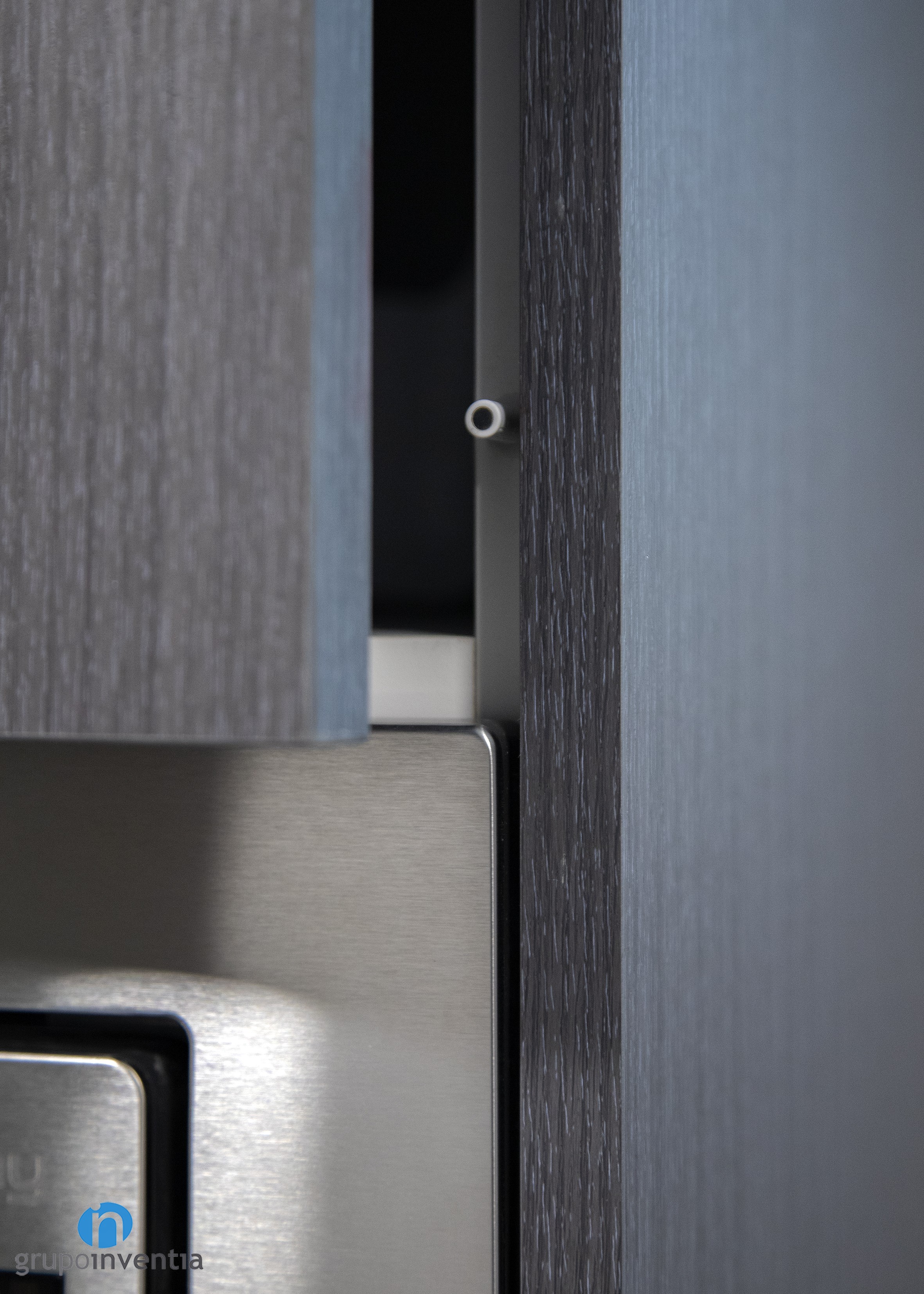 Seguidamente de este tramo de encimera, que cuenta con capacidad de almacenaje tanto en su zona inferior como superior, se encastraron los nuevos electrodomésticos, compuestos por una nevera, un horno y un microondas.