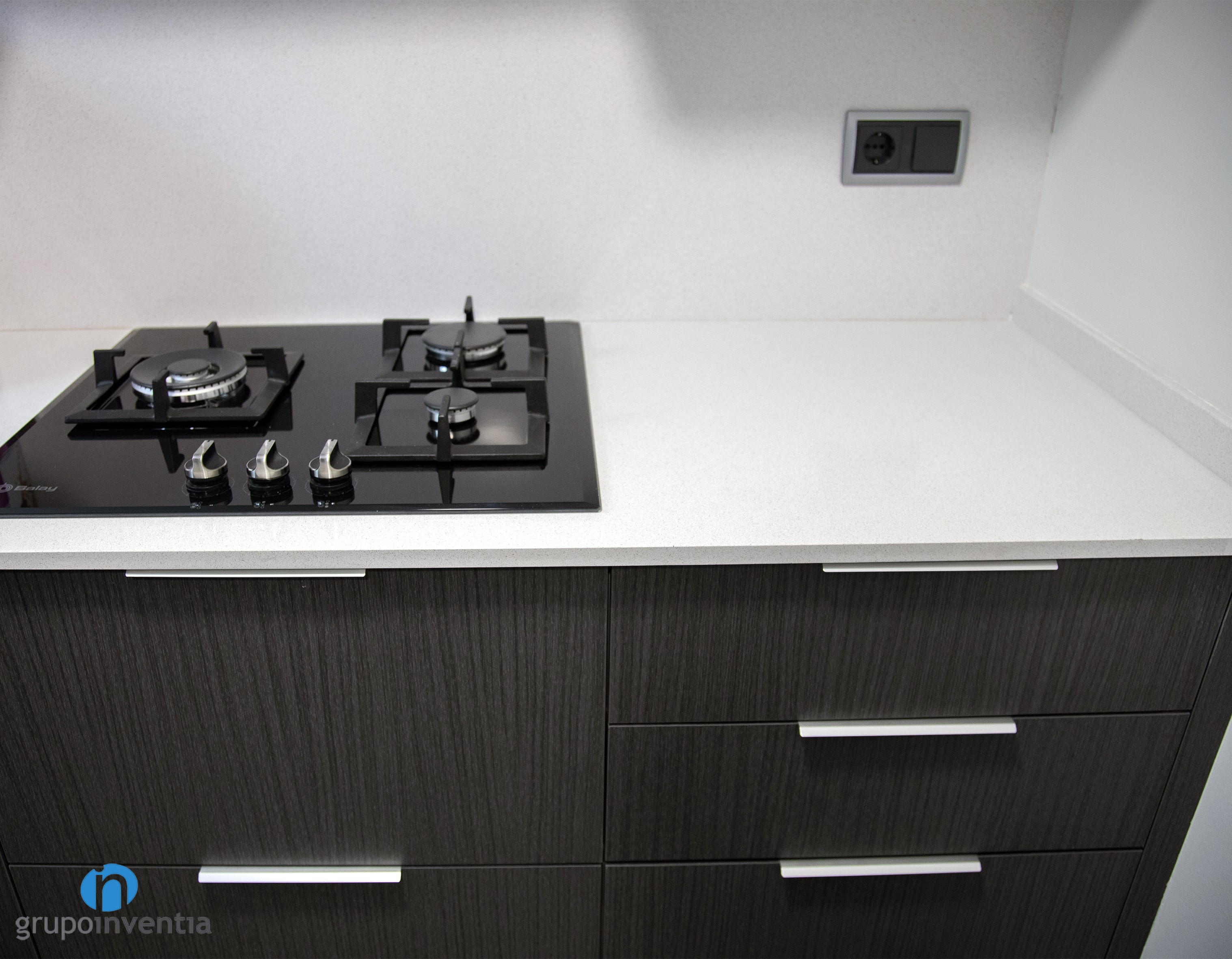 En este caso la cocina ocupa una estancia propia y que cuenta con todo lo necesario para ofrecer las mejores prestaciones y funcionalidad en su uso. La cocina tiene una distribución lineal que cuenta con una encimera equipada con una cocina de tres fogones, un fregadero individual y un espacio destinado a superficie de apoyo y de trabajo.