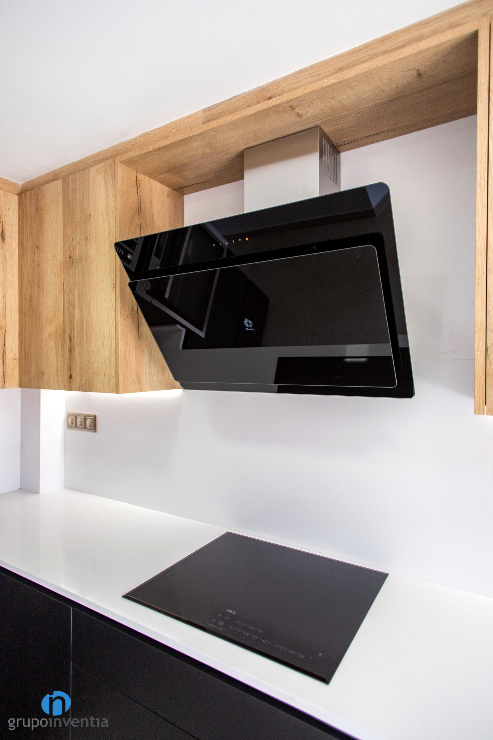 La cocina es un espacio vital en cualquier hogar y todas nuestras reformas integrales incluyen un preciso proyecto de renovación de cocina. En este caso nos la encontramos en una estancia propia y de superficie rectangular. Para la disposición de los nuevos elementos de cocina se ha escogido una distribución en forma de L.