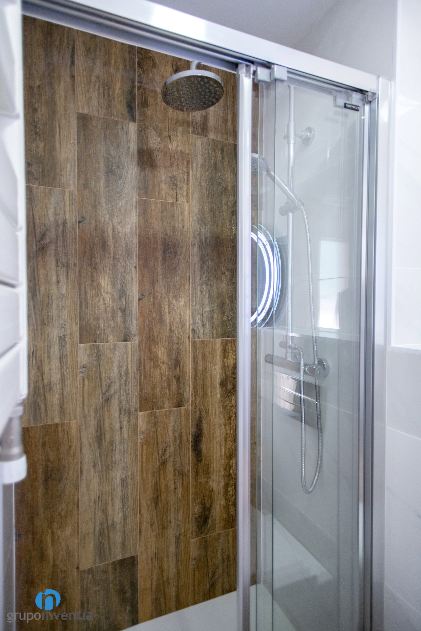 En cuanto al interiorismo, los dos cuartos de baños presentan una imagen fresca y agradable. Al ser un espacio de uso diario se ha optado por colores neutros que generen luminosidad. De este modo las paredes se han alicatado con azulejos de color blanco y, en el baño principal, de acabados en madera. También se ha colocado un pavimento de gres que imita la imagen del parquet.