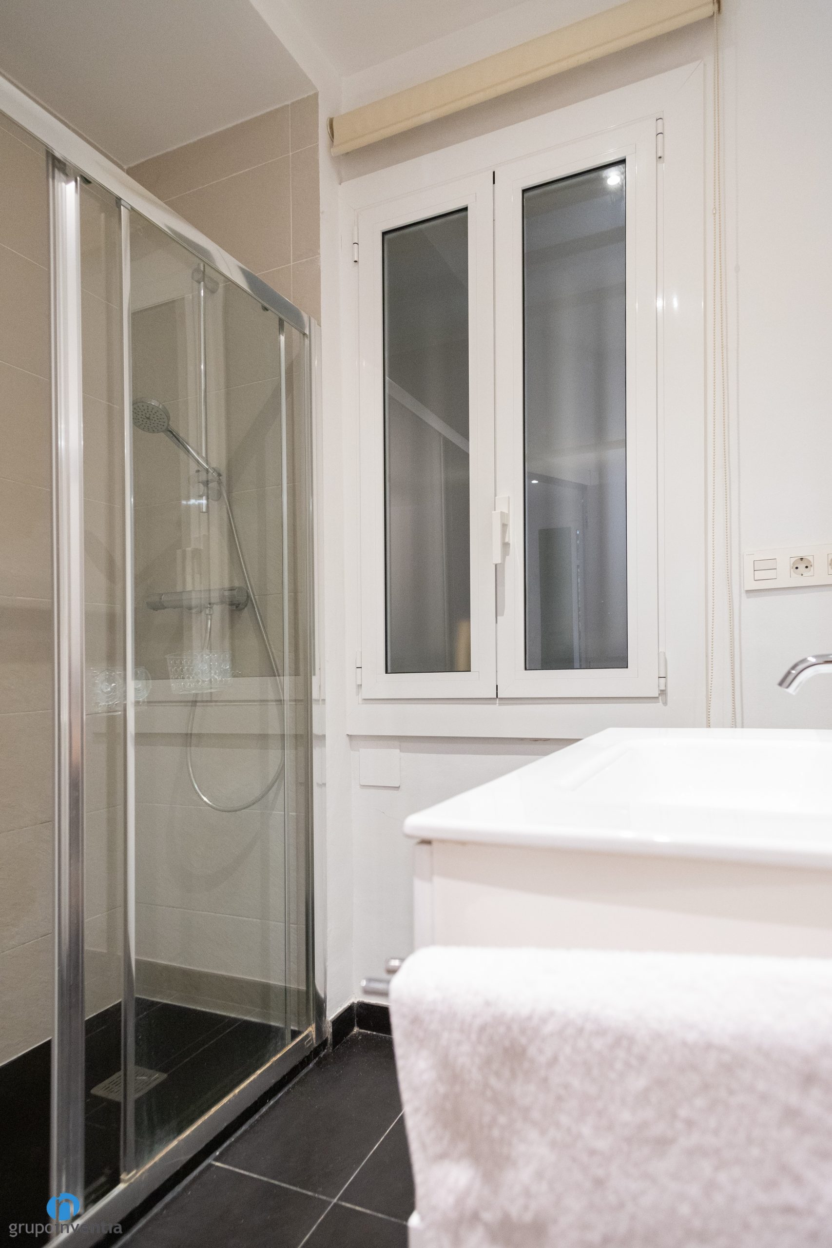 En esta vivienda de la calle Villarroel también se han reformado los espacios de aseo. Concretamente un cuarto de baño y un aseo que dispone de un lavabo y de un inodoro. Se trata de dos espacios de higiene que se complementan muy bien. De este modo las necesidades se cubren en cada uno de ellos ofreciendo multifunción.