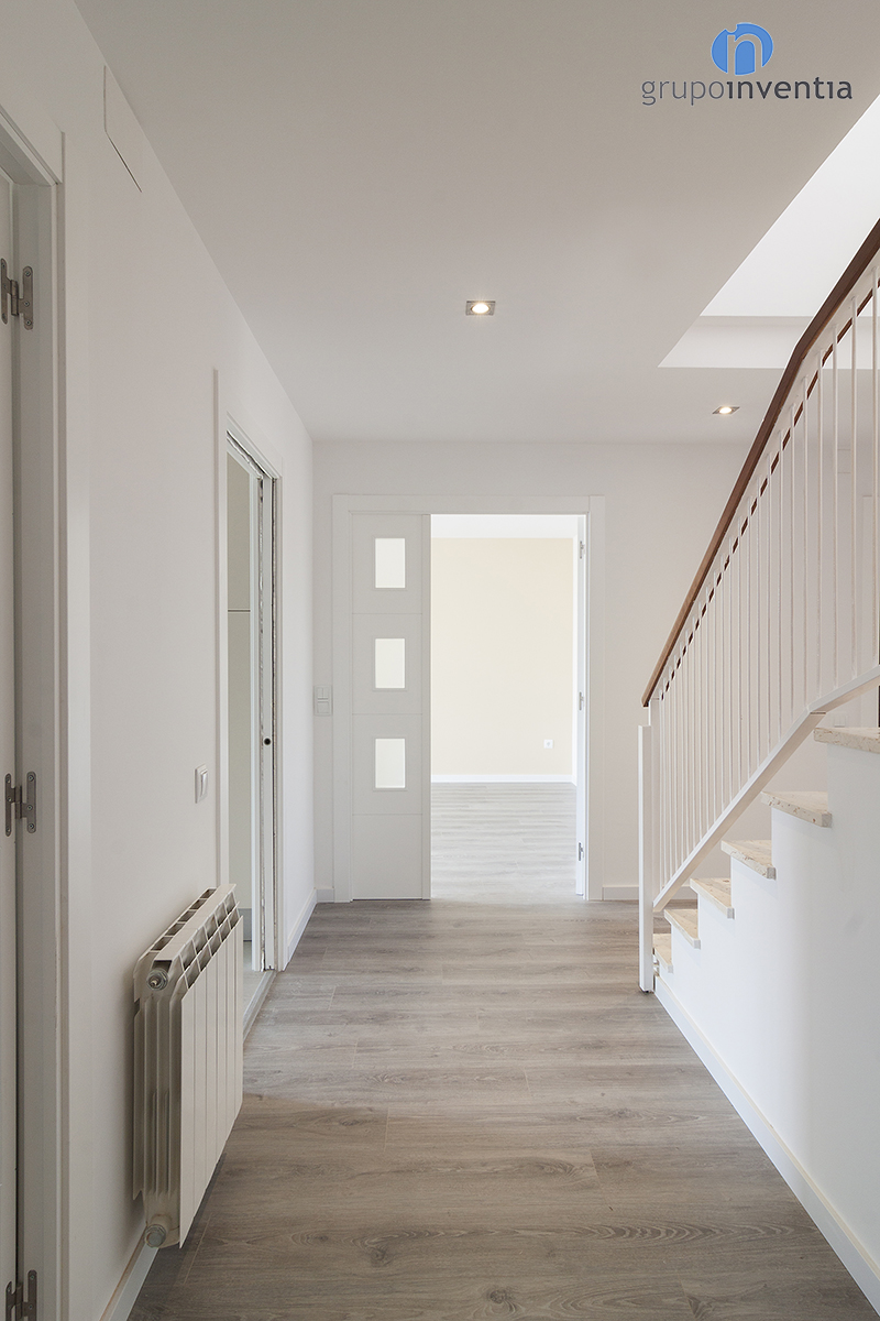 En cuanto a los espacios generales, en esta reforma integral se buscó crear espacios que transmitieran amplitud y luminosidad. Esto se consiguió utilizando el color blanco en las paredes y un tono de madera clara en el pavimento de parquet laminado que se instaló tanto en la primera como en la segunda planta.