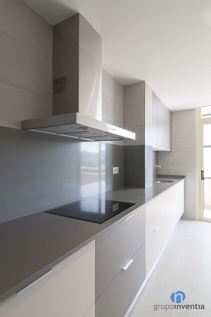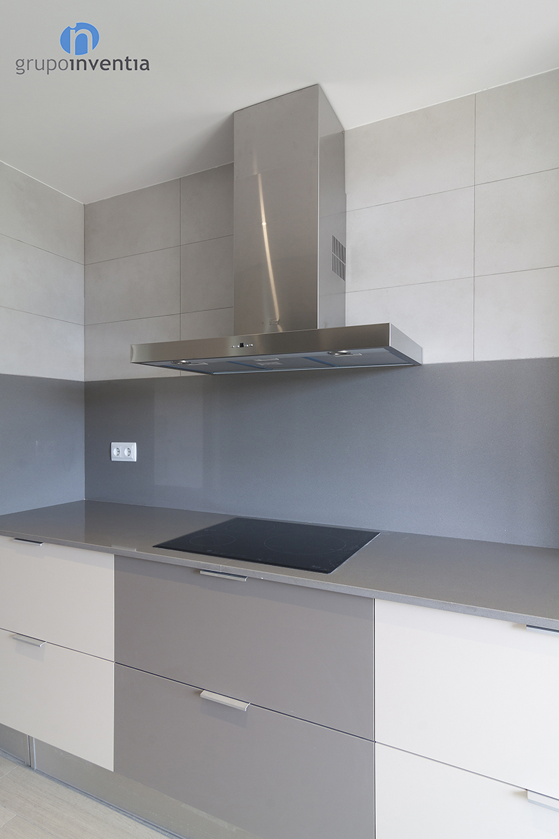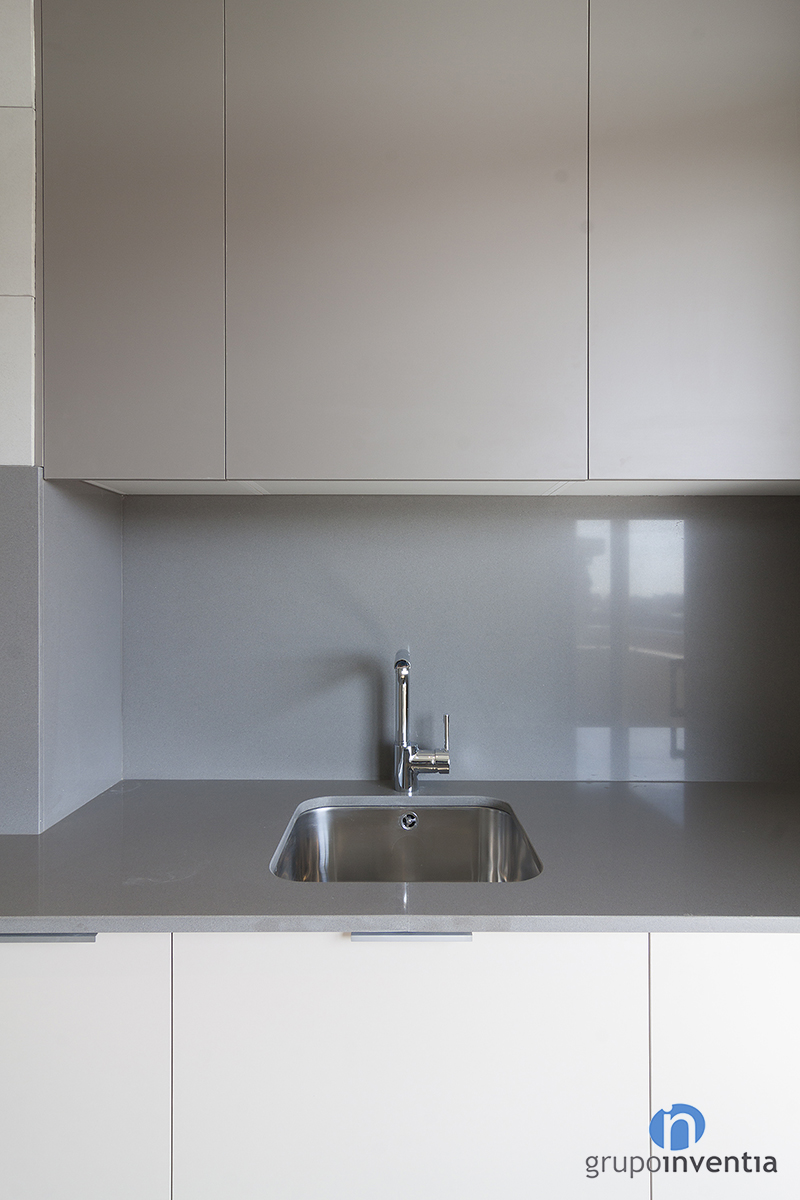 Como es habitual, se llevó a cabo la reforma de cocina, que en esta ocasión se distribuyó a dos frentes, además de equiparse por completo. En el lado izquierdo de la estancia se colocó una amplia y alargada encimera en la que se colocó una placa vitrocerámica, acompañada de una campana extractora, y un fregadero individual. En esta parte de la reforma de la cocina, también se dispone de varios cajones y armarios para el almacenaje tanto en la parte superior como en la inferior.