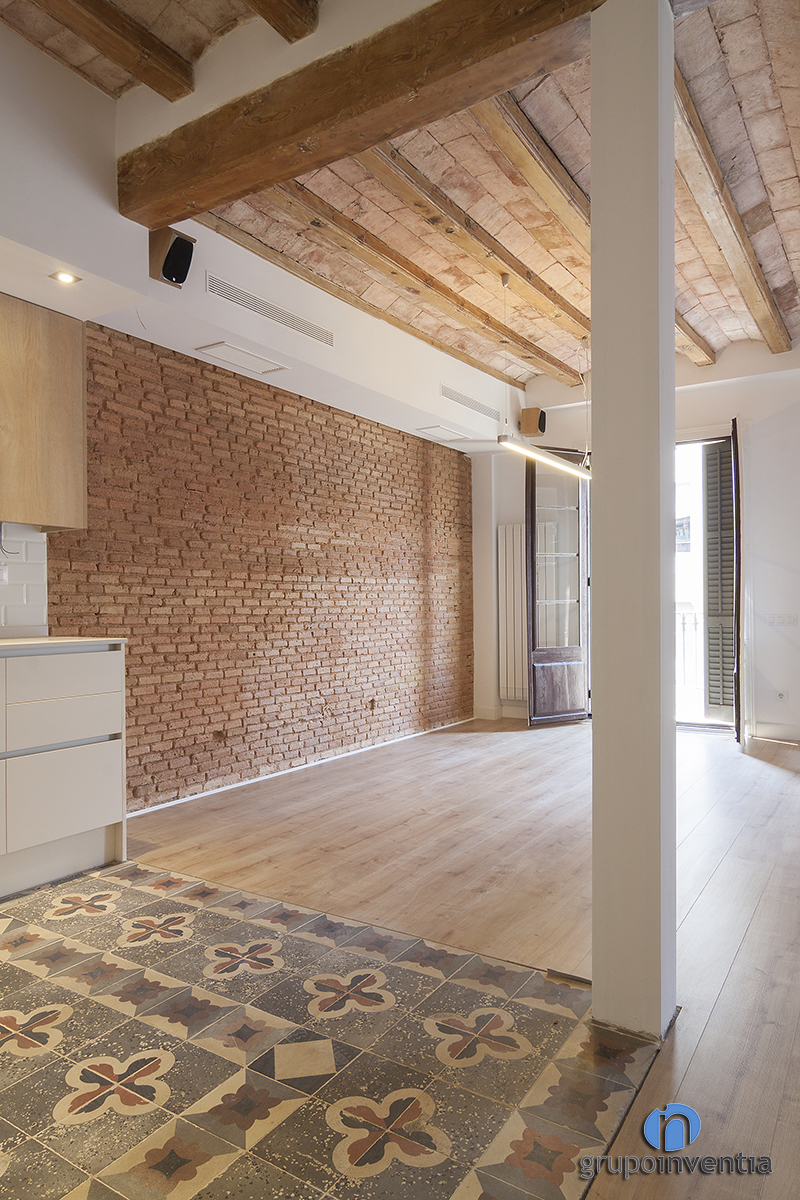 Entre las reformas integrales en Barcelona finalizadas recientemente se encuadra la realizada en la calle Gran de Gràcia. Se trató de la rehabilitación total de un inmueble que contaba con una cocina abierta al salón-comedor y una suite con baño entre los aspectos más destacables. En el mencionado salón, se llevó a cabo la instalación de pared y techo de ladrillo visto, consiguiendo así mantener la esencia de antaño que caracteriza a las viviendas ubicadas en esta zona de Barcelona.