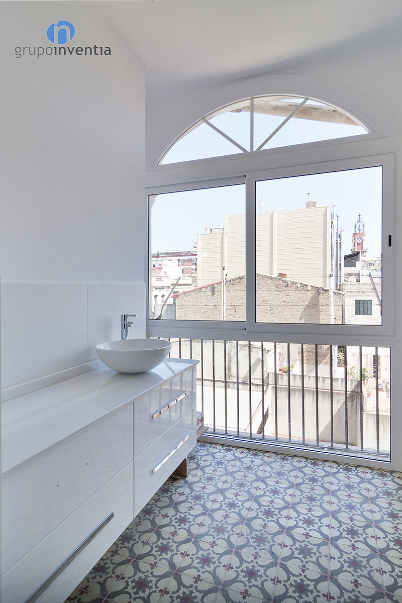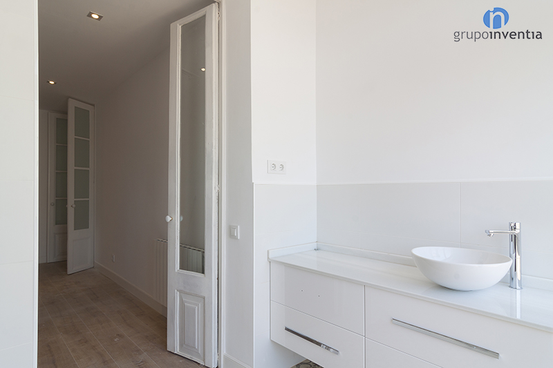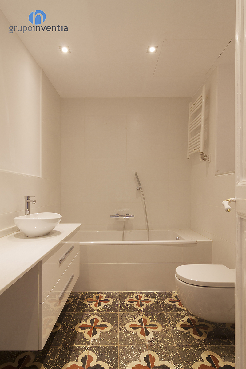 También se deben mencionar las reformas de baño, en este caso el de cortesía y el de la suite. La reforma de baño de cortesía se finalizó equipando por completo la estancia. Un lavabo, un inodoro y una cómoda bañera fueron los elementos elegidos para rehabilitar esta estancia. En cuanto a la reforma de baño de la suite, este se equipó con un amplio lavabo doble, un inodoro y un funcional plato de ducha, ideal para el día a día. Destaca de esta estancia su gran ventana, que ilumina tanto el cuarto de baño como la habitación anexa a él. Como detalle a tener en cuenta, en ambas reformas de baño se mantuvo el pavimento hidráulico original, al igual que en la reforma de cocina.