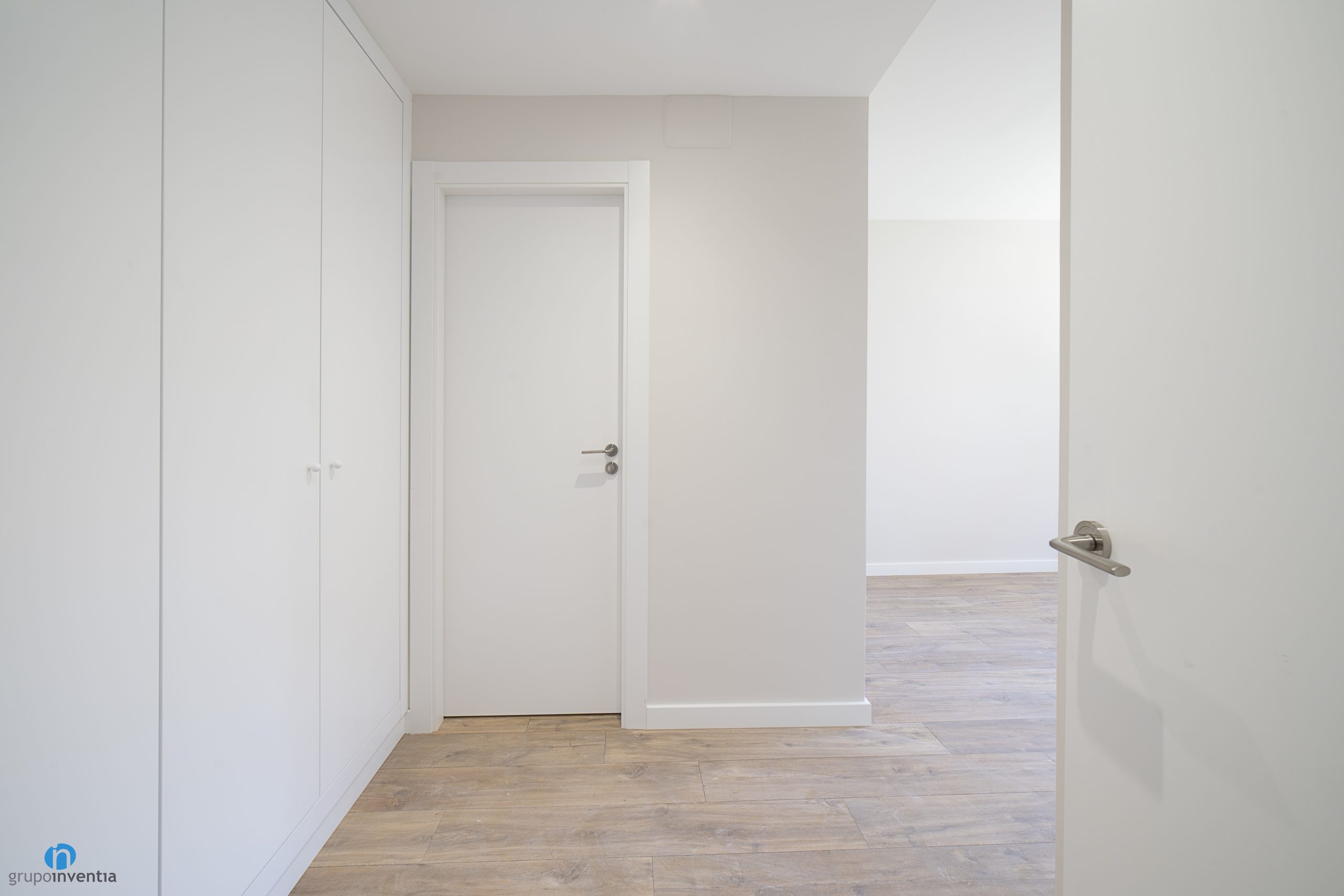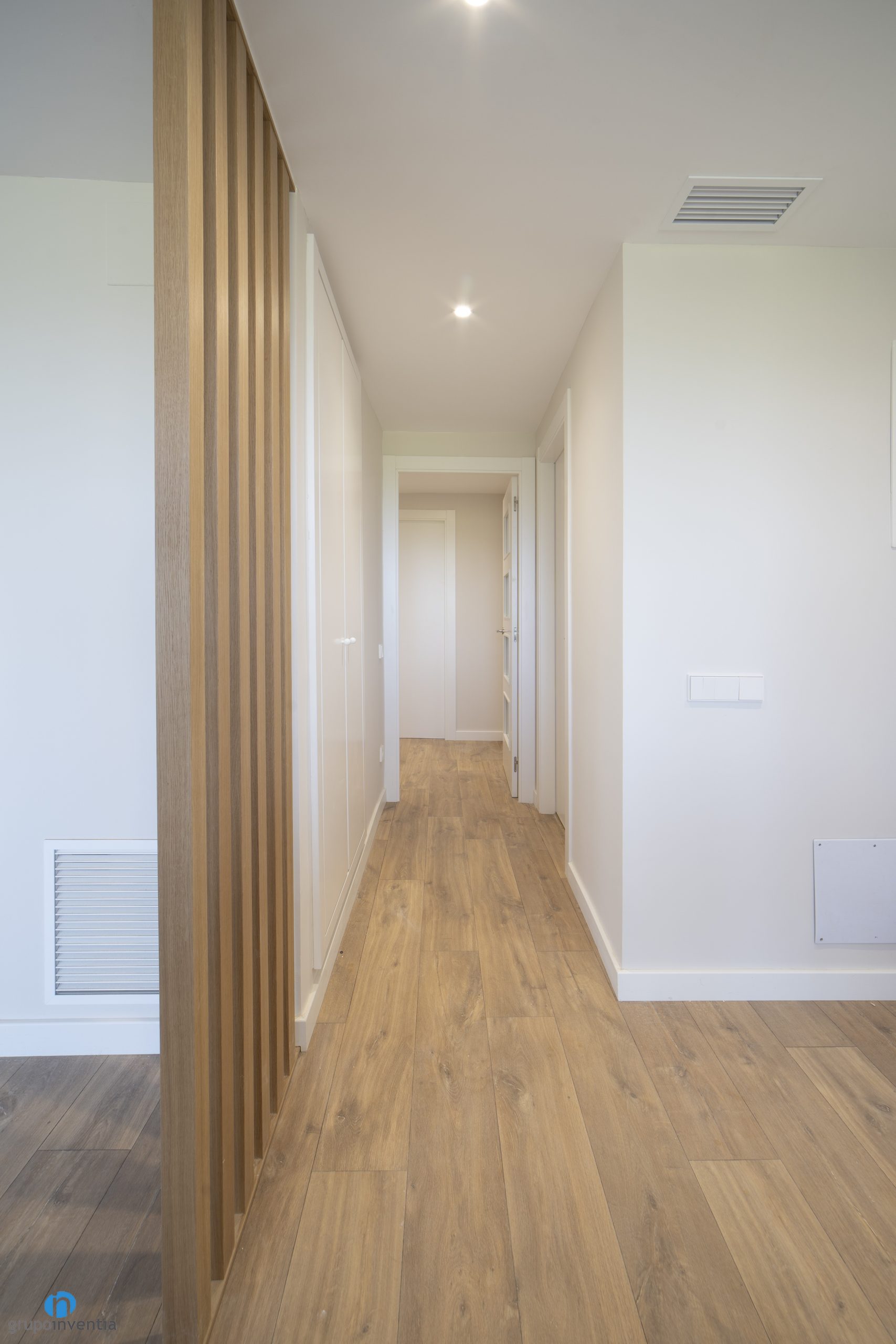 Las paredes se han pintado con un suave tono beige que permite que la luz natural llegue a cada rincón. Las nuevas puertas de color blanco contrastan sutilmente y marcan muy bien los espacios. Todo ello se completa con un nuevo suelo de parquet en tonos de madera natural. Este último elemento aporta la esa calidez tan deseada en un hogar.