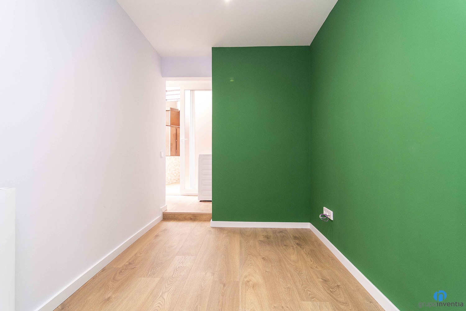 Para romper con la uniformidad cromática, en cada dormitorio se ha pintado una pared en un color vivo que aporta carácter sin saturar el ambiente. Uno de los dormitorios incorpora un tono azul, otro gris y el que funciona como despacho luce un atractivo verde. Esta combinación es parte de nuestra filosofía de diseño en reformas integrales en Madrid, donde la personalización juega un papel esencial.